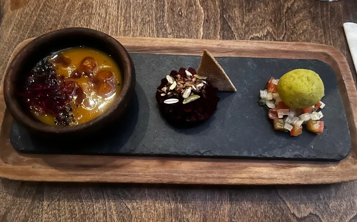 Dès l’arrivée, l’atmosphère se distingue : lumières tamisées, design soigné, cuisine ouverte… tout est pensé pour créer une expérience immersive et élégante. En cuisine, le chef propose une véritable cuisine du monde, où les influences internationales se mêlent aux produits chiliens.