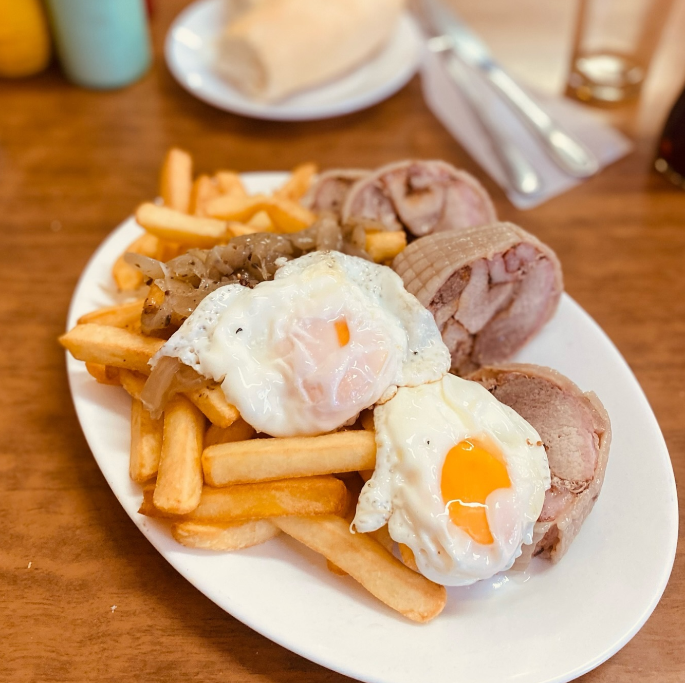 Aujourd’hui, cette histoire se ressent encore dans l’assiette. On y sert une cuisine chilienne généreuse et savoureuse, avec des plats emblématiques comme la lengua, le pernil longuement mijoté ou la chorrillana à partager.